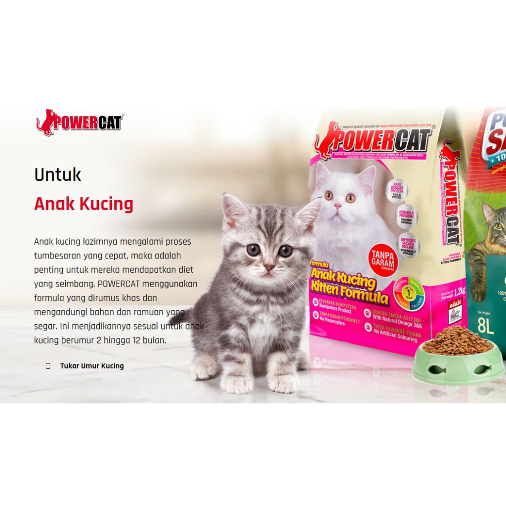 0 Response to "POWERCAT, MAKANAN ANAK KUCING, 420gm/1.2kg - tumbersaran kucing"